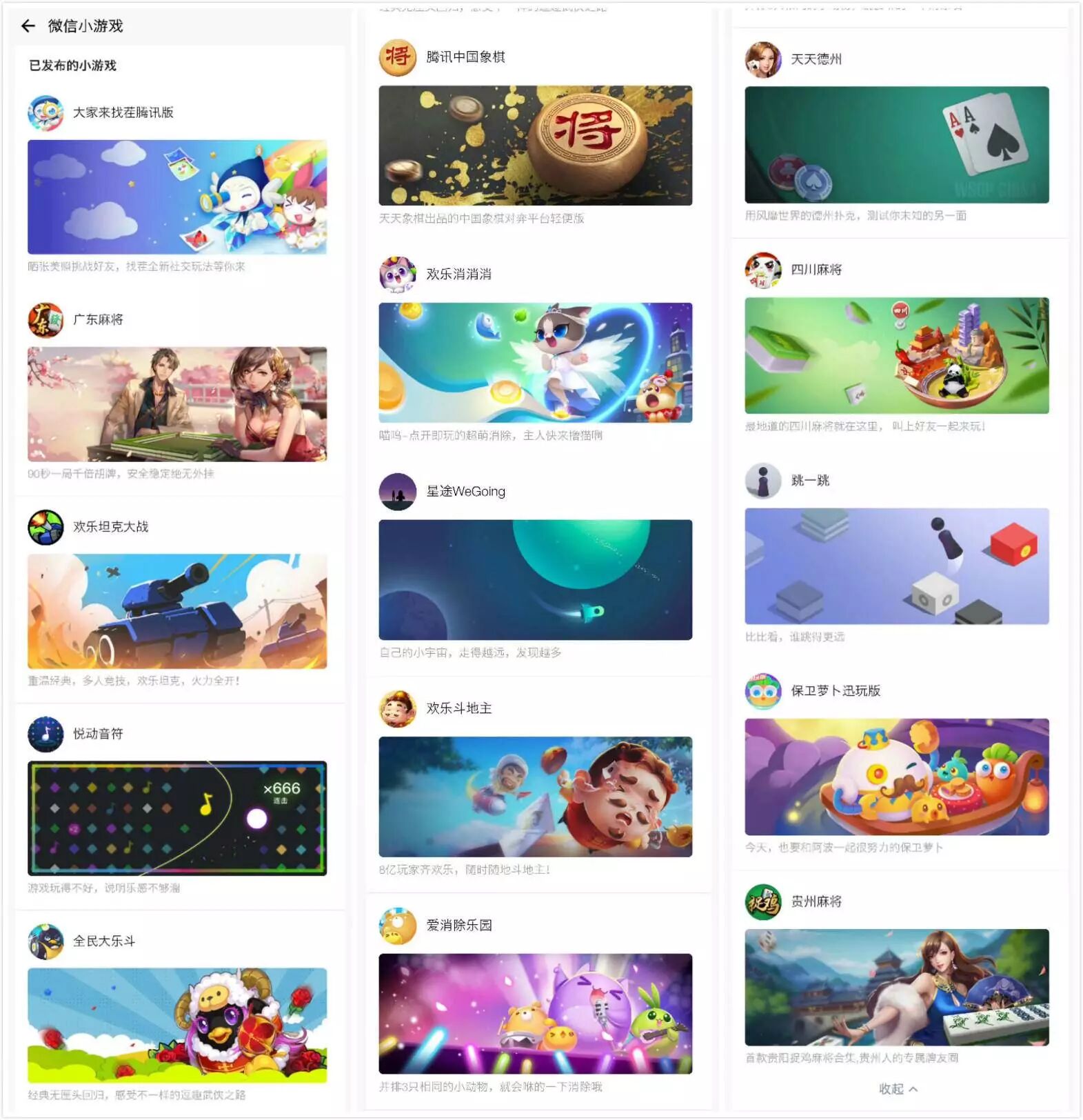 目前微信小游戏有15个,主要分为棋牌、竞技和休闲3大类: